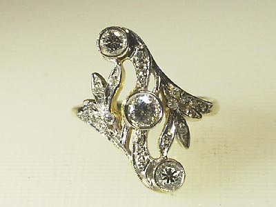 RING, 18K guld, 3 större & 21 mindre briljanter ca 0,55 ct totalt, ca TCr/SI (mittsten P), (1 dia saknas)
