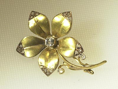 BROSCH, 18K guld, gammal- & rosenslipade diamanter ca 0,28 ct totalt (5 rosenstenar saknas), V=5,1 gr.