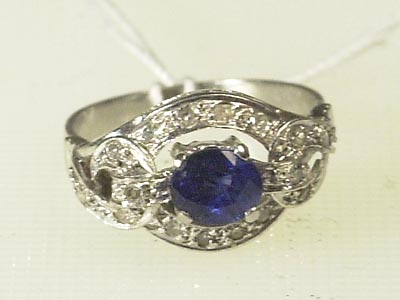 RING, platina, safir ca 0,60 ct, åttkantslipade diamanter ca ca 0,18 ct, stl 16, vikt 3,5 gr.