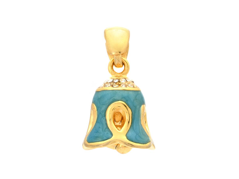 HÄNGE, bjällra, förgyllt silver, turkos emalj, cz, design A Jewel Veronika, 19 mm, vikt 5 gram.