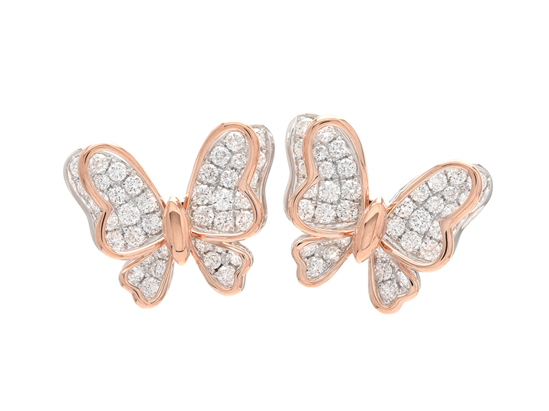 ÖRHÄNGEN, 18K roséguld/vitguld, fjärilar, 79 briljanter 0,91 ctv, ca TW(G)/SI, stift, rörlig, vikt 4,8 g, höjd 12 mm.