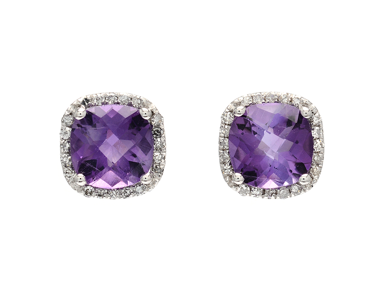 ÖRHÄNGEN, 18K vitguld, ametister 1,82 ctv, åttkantslipade diamanter 0,12 ctv, vikt 1,6 g, stift.
