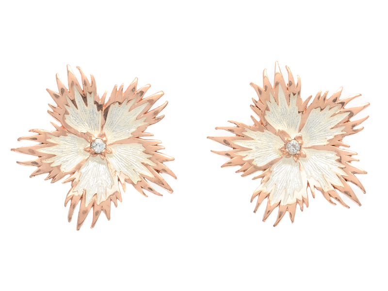 ÖRHÄNGEN, roséförgyllt sterlingilver, vit emalj och vita safirer, vikt 2 g, stift.