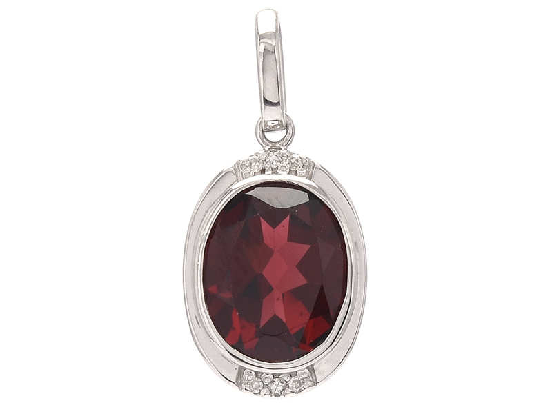 HÄNGE, 18K vitguld med oval granat 2,90 ctv, åttkantslipade diamanter 0,02 ctv, vikt 1,9 g