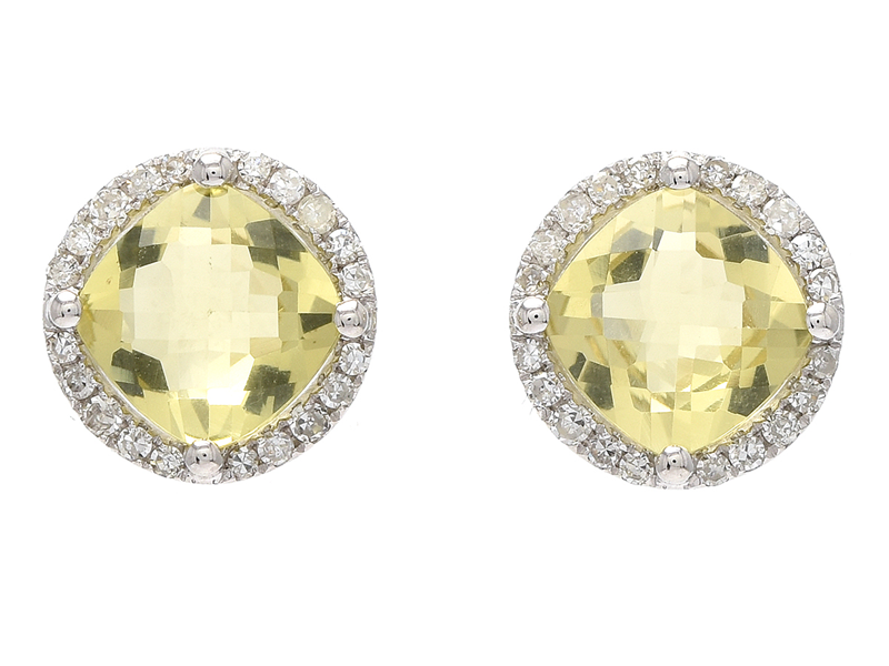ÖRHÄNGEN, 18K vitguld med limekvarts 1,50 ctv, åttkantslipade diamanter 0,15 ctv, stift