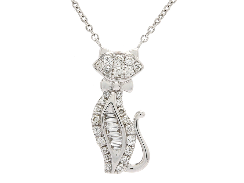 COLLIER, 18K vitguld, katt, 31 diamanter 0,23 ctv, ca W/SI-P, längd 40 cm