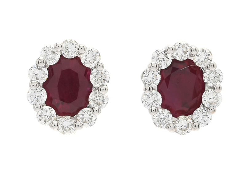 ÖRHÄNGEN, 18K vitguld, rubiner 0,64 ctv, 20 briljanter 0,25 ctv ca G/SI, stift