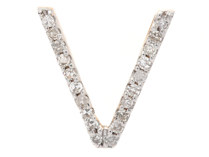 BOKSTAVSHÄNGE, bokstav V, 18K guld, åttkantslipade diamanter 0,10 ctv, vikt 0,6 g