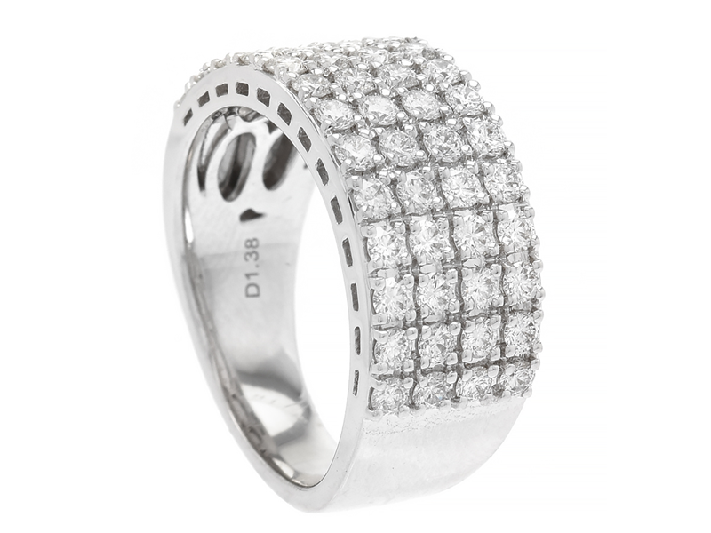 RING, 18K vitguld, 52 briljantslipade diamanter 1,38 ctv, ca TW-W/VVS-VS, stl 17 mm, vikt 8,5 g.