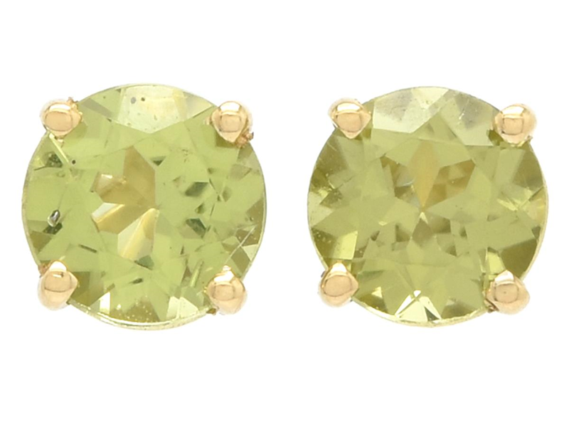 ENSTENSÖRHÄNGEN, 18K guld, 2 runda fasetterade peridoter 1,16 ctv, stift, vikt 1,1 g.