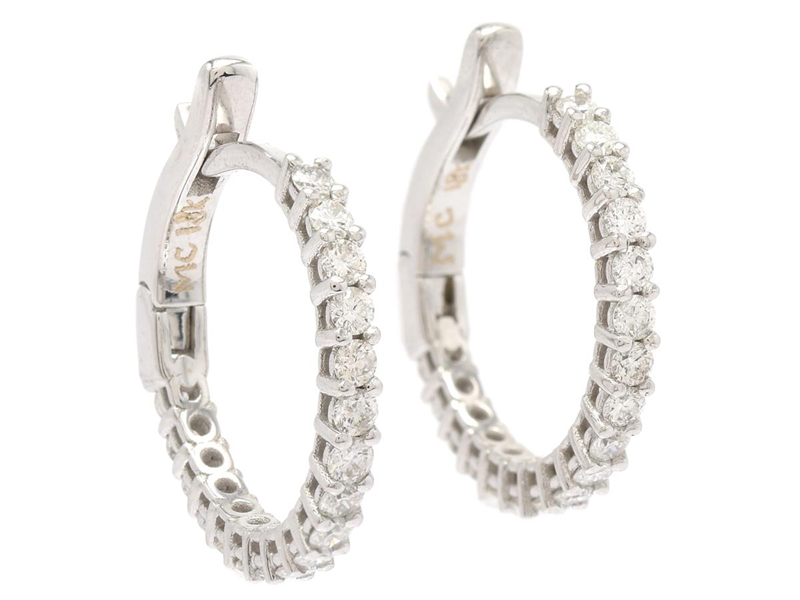 ÖRHÄNGEN, 18K vitguld, 36 st briljantslipade diamanter ca 1,07 ctv, ca W-TCr/SI-P, diameter 20 mm, vikt 4,6 g.