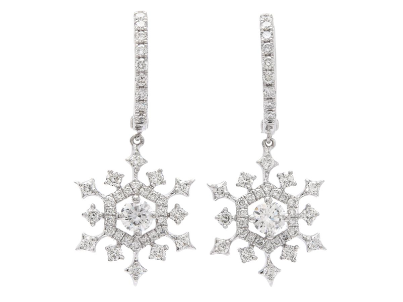 ÖRHÄNGEN, 18K vitguld, snöflingor, 80 briljantslipade diamanter ca 0,99 ctv, varav mittstenarna ca 0,15 ct vardera, ca TW/VS, stift, längd 2,8 cm, vikt 3,8 g.