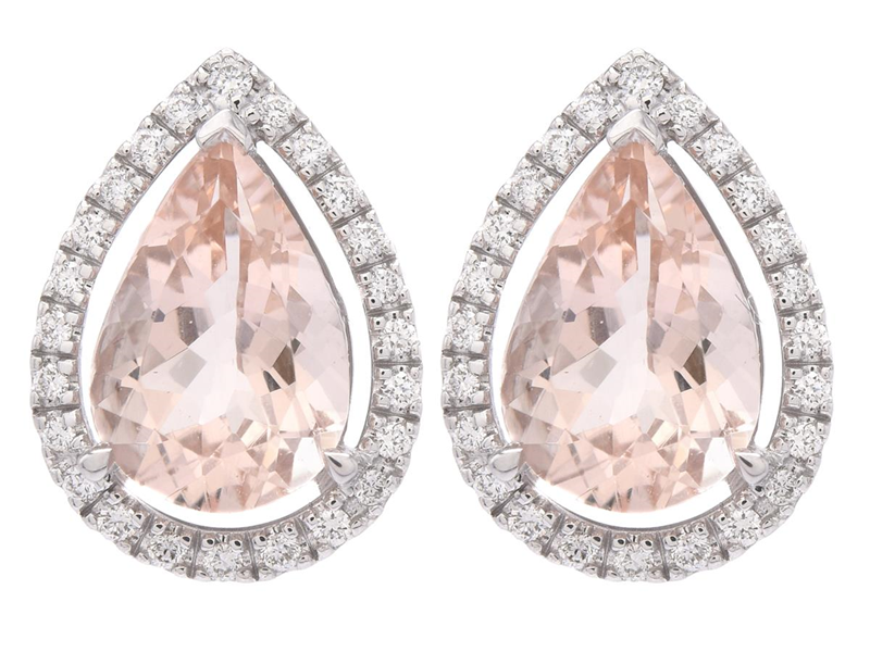ÖRHÄNGEN, 18K vitguld, 2 droppslipade morganiter ca 1,98 ctv, 48 briljantslipade diamanter ca 0,14 ctv, ca W/SI, stift, mått 9,0 x 12,5 mm, vikt 3,1 g.