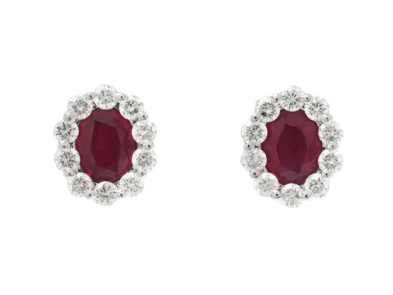ÖRHÄNGEN, 18K vitguld, rubiner 0,54 ctv, 20 briljanter 0,26 ctv ca TW(G)/VS-SI, stift