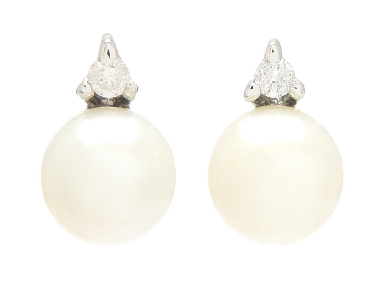 PÄRLÖRHÄNGEN, 18K vitguld med odlade sötvattenspärlor 4,5 mm, 2 briljanter 0,02 ctv, stift