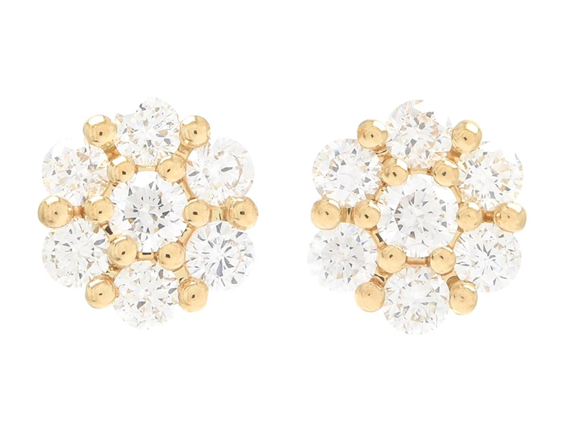 ÖRHÄNGEN, 18K guld, 14 briljantslipade diamanter ca 0,51 ctv, ca W/SI, stift, mått ca 6,0 x 6,0 mm, vikt 1,2 g.