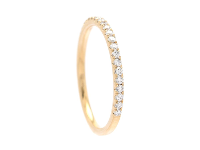 ALLIANSRING, 18K guld, 21 briljantslipade diamanter ca 0,23 ctv, ca W/SI, storlek 15 mm, vikt 1,4 g.
