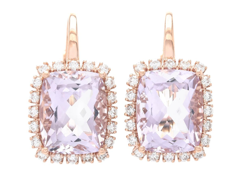 ÖRHÄNGEN, 18K roséguld, 2 fasettslipade ametister ca 5,81 ctv, 40 briljantslipade diamanter ca 0,39 ctv, ca W/SI, stängbara krokar, höjd ca 19 mm, vikt 5,2 g, enstaka diamanter med ytskador.