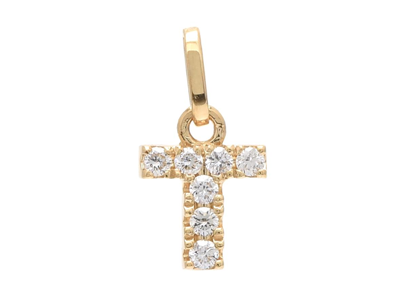 BOKSTAVSHÄNGE, bokstav T, 18K guld, 7 briljantslipade diamanter ca 0,06 ctv, ca W/VS-SI, höjd 5,5 mm, vikt 0,2 g.