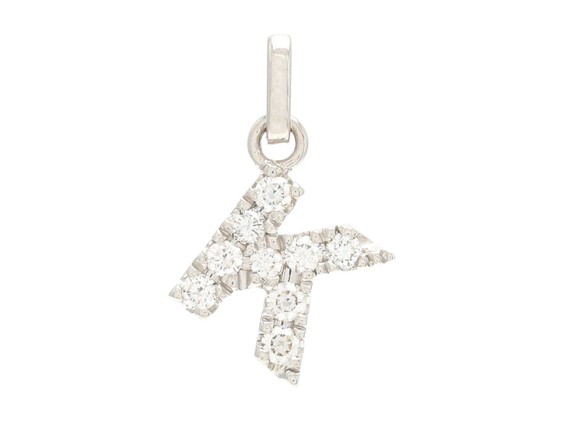 BOKSTAVSHÄNGE, bokstav K, 18K vitguld, 9 briljantslipade diamanter ca 0,16 ctv, ca W/VS-SI, höjd 7,0 mm, vikt 0,7 g.