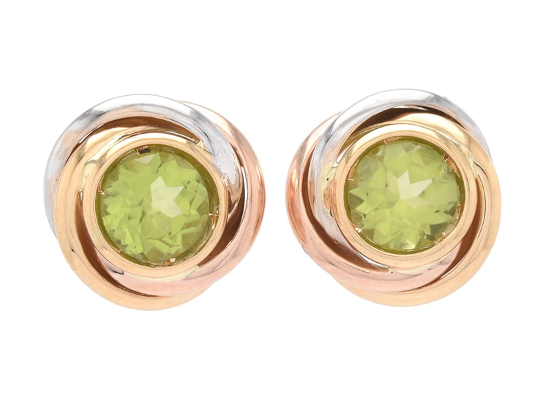 ÖRHÄNGEN, 18K guld/vitguld/roséguld, fasettslipade peridoter, stift, diameter 10 mm, vikt 2,9 g.