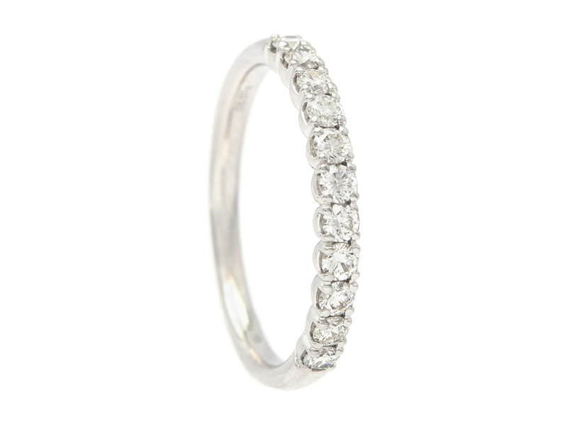 ALLIANSRING, 18K vitguld, 11 briljantslipade diamanter ca 0,57 ctv, ca W/VS-SI, storlek 19,25 mm, vikt 3,5 g.