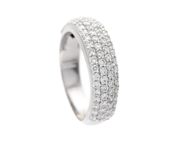 RING, 18K vitguld, 82 briljantslipade diamanter ca 1,06 ctv, ca TW-TCR/VS, stl 17,25 mm, vikt 5 g.