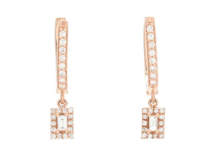 ÖRHÄNGEN, 18K roséguld, 2 baguette - och 44 briljantslipade diamanter 0,33 ctv, ca TW/VS, höjd 22 mm, vikt 3,4 g, huggies.