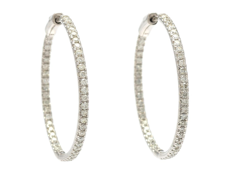 ÖRRINGAR, 18K vitguld, 96 briljantslipade diamanter ca 1,55 ctv, ca TW-Cr/P, diameter 33 mm, stift, vikt 8,0 g.