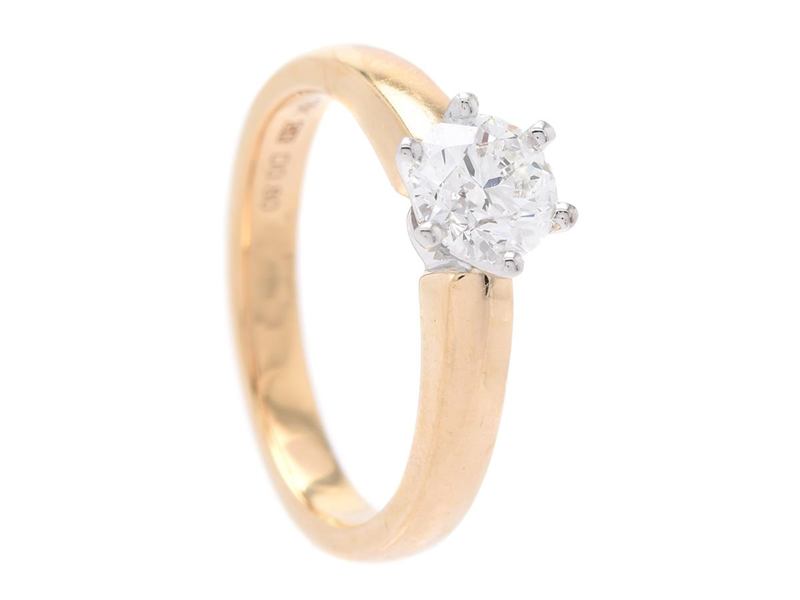 ENSTENSRING, 18K guld/vitguld, briljantslipad diamant 0,80 ct, TW(F)/VS2, GIA Diamond Dossier 7408416180, storlek 16,75 mm, vikt 5,1 g.