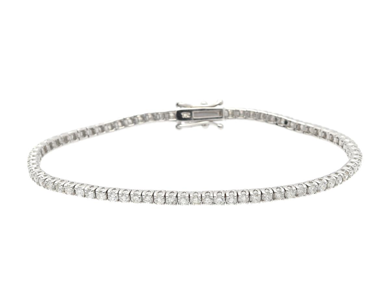 TENNISARMBAND, 18K vitguld, 75 briljantslipade diamanter ca 2,95 ctv, ca TW-Cr/P, längd 18 cm, vikt 9,6 g.