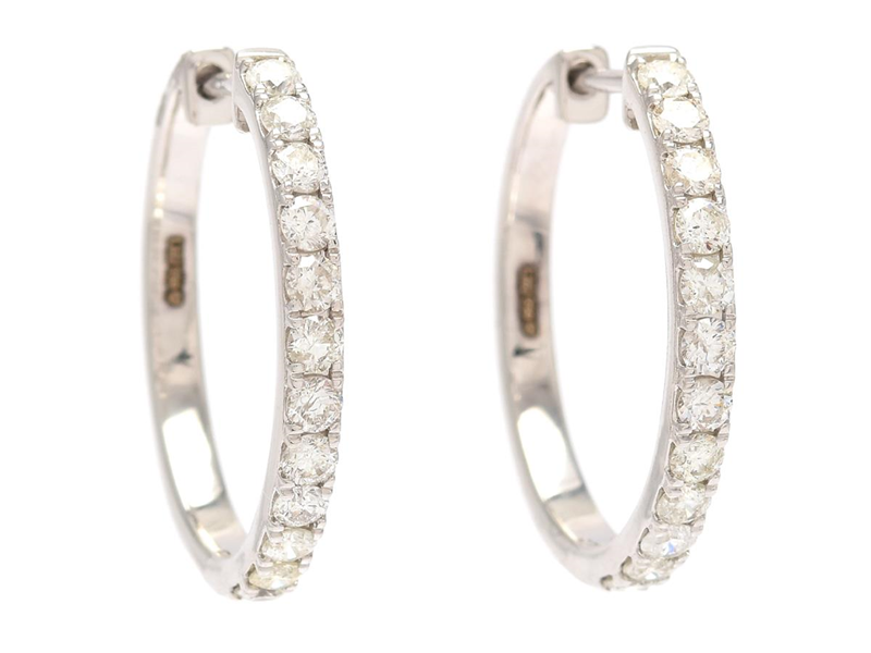 ÖRRINGAR, 18K vitguld, 24 briljantslipade diamanter ca 0,93 ctv, ca TW-TCa/P, diameter 21 mm, stift, vikt 5,1 g, några diamanter har inneslutningar som når ytan.