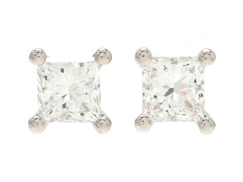 ENSTENSÖRHÄNGEN, 18K vitguld, prinsesslipade diamanter ca 0,43 ctv, ca TW/VS, stift, vikt 1,0 g.