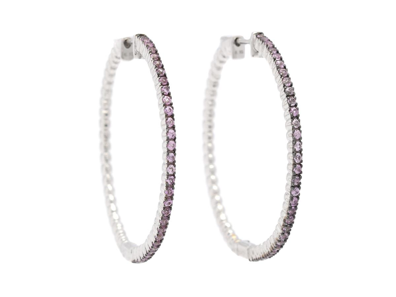 ÖRHÄNGEN, 18K vitguld, delvis svartrodinerat, 60 runda fasettslipade rosa safirer ca 0,85 ctv, stift, höjd 35 mm, bredd 1,5 mm, vikt 8,2 g, enstaka safirer med ytskador.