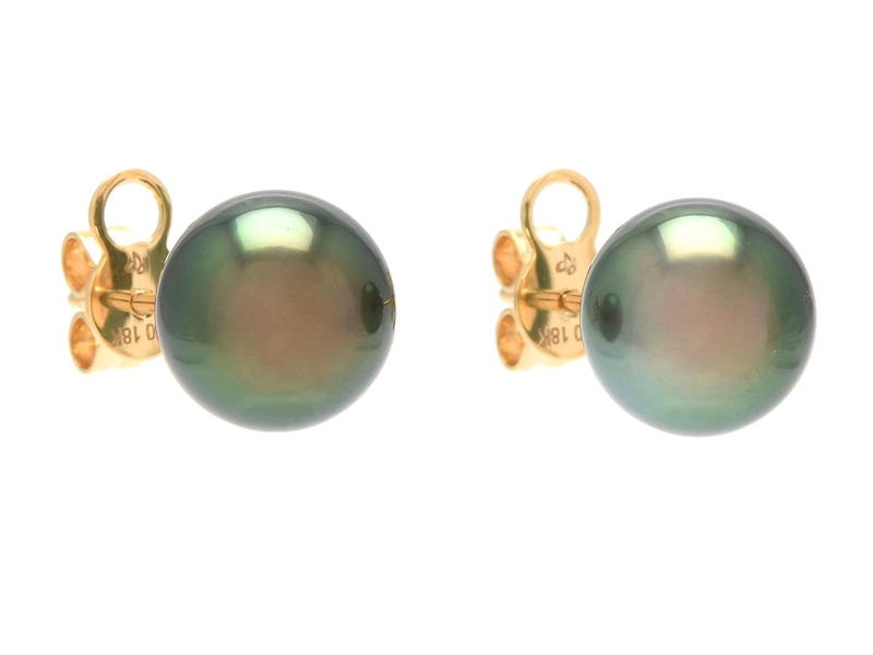 PÄRLÖRHÄNGEN, 18K guld, Tahitipärlor ca 8,6-8,7 mm, stift, vikt 2,6 g.