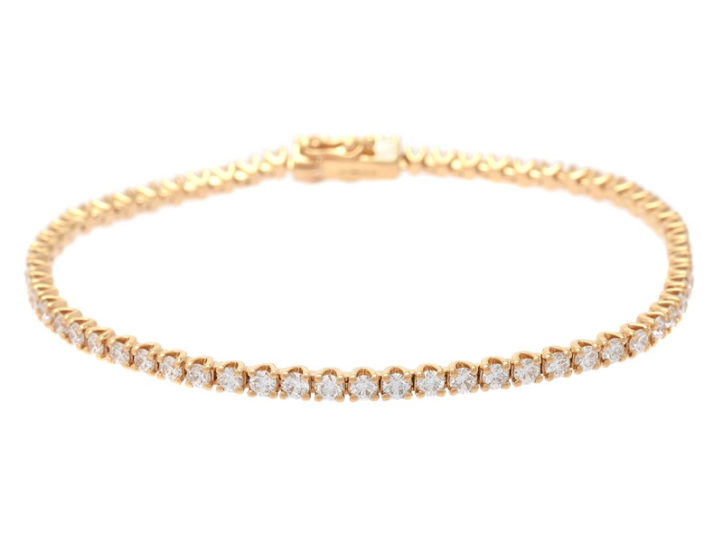 TENNISARMBAND, 18K guld, 63 briljantslipade diamanter ca 2,86 ctv, ca TW/VS, längd 17,5 mm, vikt 9,5 g.