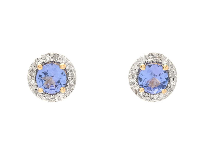 ÖRHÄNGEN, 18K guld, runda fasettslipade tanzaniter ca 0,55 ctv, åttkantslipade diamanter ca 0,05 ctv, stift, diameter 6,5 mm, vikt 1,5 g, några diamanter med ytdefekter.