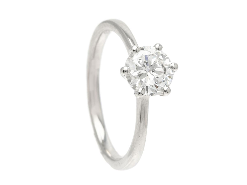 ENSTENSRING, platina, briljantslipad diamant 1,00 ct, TW(F)/SI2, GIA Report No 1429665539, stl 16,75 mm, vikt 3,2 g, GIA certifikat.