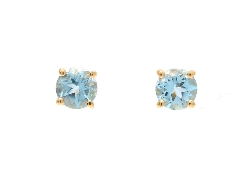 ÖRHÄNGEN, 18K guld, runda fasettslipade blå topaser ca 0,42 ctv, stift, vikt 0,7 g.