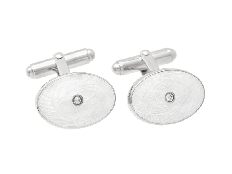 MANSCHETTKNAPPAR, sterlingsilver, vit emalj, 2 briljantslipade diamanter ca 0,06 ctv, ca W/VS-SI, mått 19,0 x 13,0 mm, vikt 11,7 g.