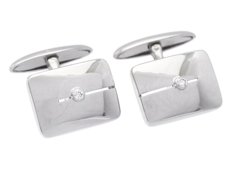 MANSCHETTKNAPPAR, 18K vitguld, briljantslipade diamanter ca 0,075 ctv, ca W/VS, mått 17,0 x 12,0 mm, vikt 6,9 g.