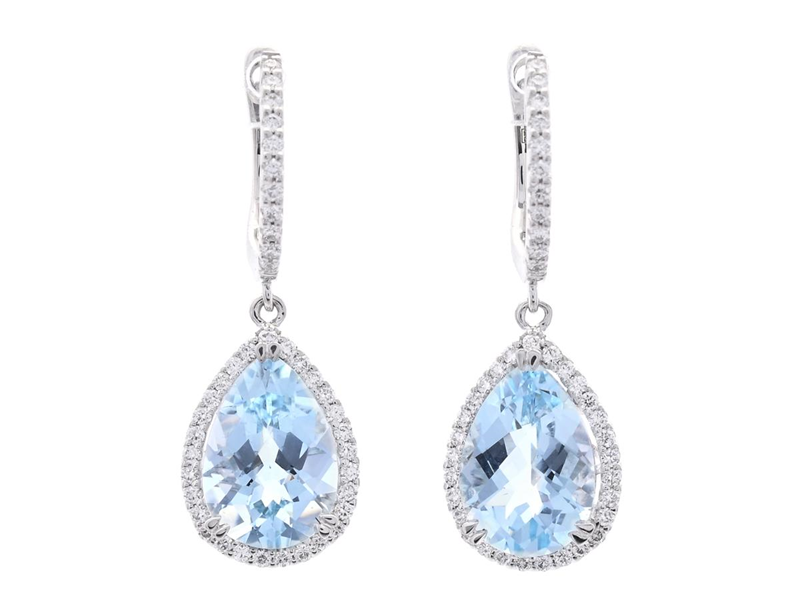 ÖRHÄNGEN, 18K vitguld, 2 droppslipade akvamariner ca 3,16 ctv, 80 briljantslipade diamanter ca 0,33 ctv, ca W/VS-SI, stift, längd 25,0 mm, vikt 3,7 g.