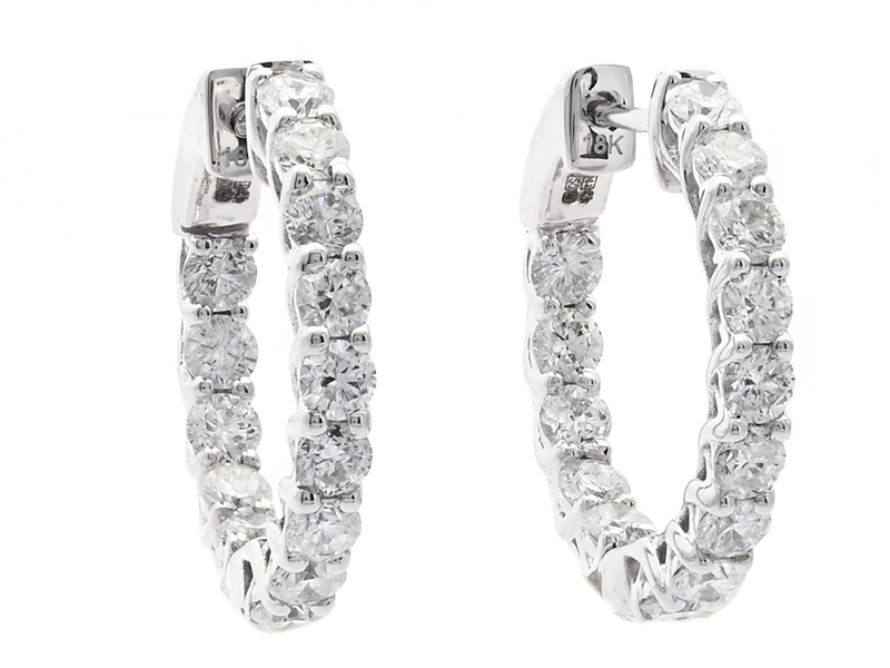 ÖRRINGAR, 18K vitguld, 28 briljantslipade diamanter ca 2,07 ctv, ca TW-Cr/P, diameter 18 mm, stift, vikt 5,5 g, några diamanter med små nagg, 1 diamant med chips.