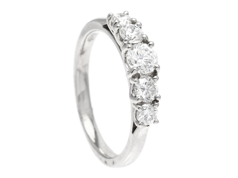 RING, platina, 5 briljantslipade diamanter ca 0,79 ctv, ca TW/P, stl 17 mm, vikt 4,4 g, någon diamant med nagg på kuletten.