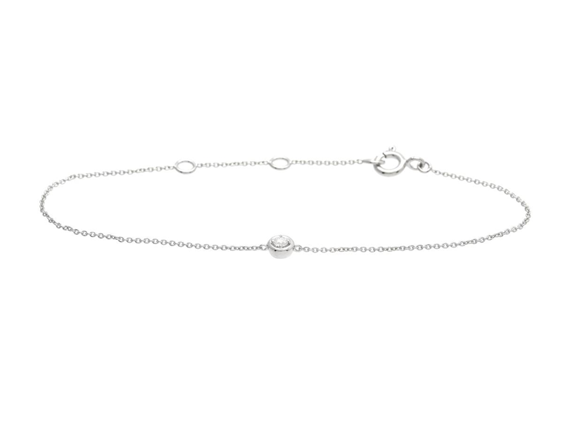 ARMBAND, 18K vitguld, briljantslipad diamant ca 0,05 ct, ca TW/VS, längd 14,5/16/17,5 cm, vikt 1,1 g.