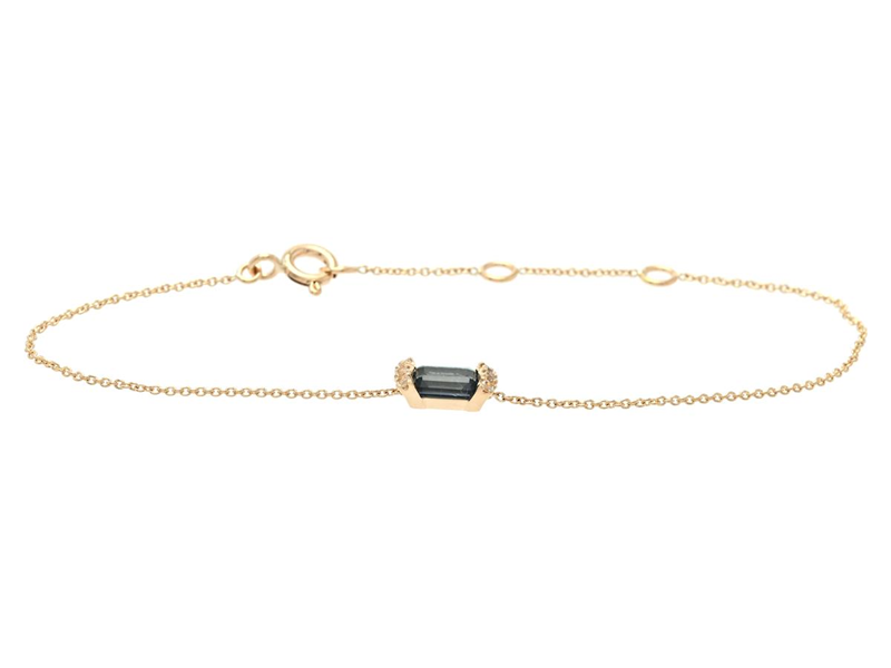 ARMBAND, 18K guld, 7 blå topaser ca 0,77 ctv, längd 14,5/16/17,5 cm, vikt 1,3 g.