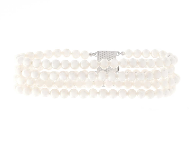 PÄRLARMBAND, fyraradigt, odlade sötvattenspärlor ca 5,0-5,5 mm, knutet, lås i sterlingsilver, längd 19 cm.