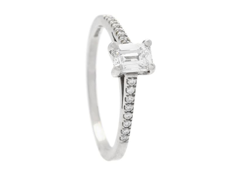 RING, platina, smaragdslipad diamant 0,50 ct, River(D)/VS1, laserinskription GIA 2146329106, 16 briljantslipade diamanter ca 0,10 ctv, ca TW-W/VS, storlek 17 mm, vikt 3,0 g.