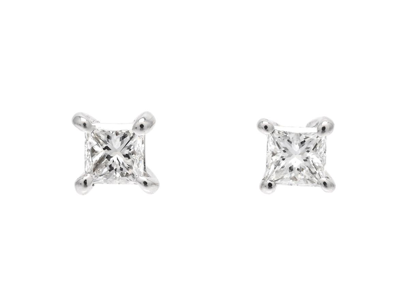 ENSTENSÖRHÄNGEN, 18K guld/vitguld, prinsesslipade diamanter ca 0,32 ctv, ca TW/VS, stift, vikt 1,5 g.