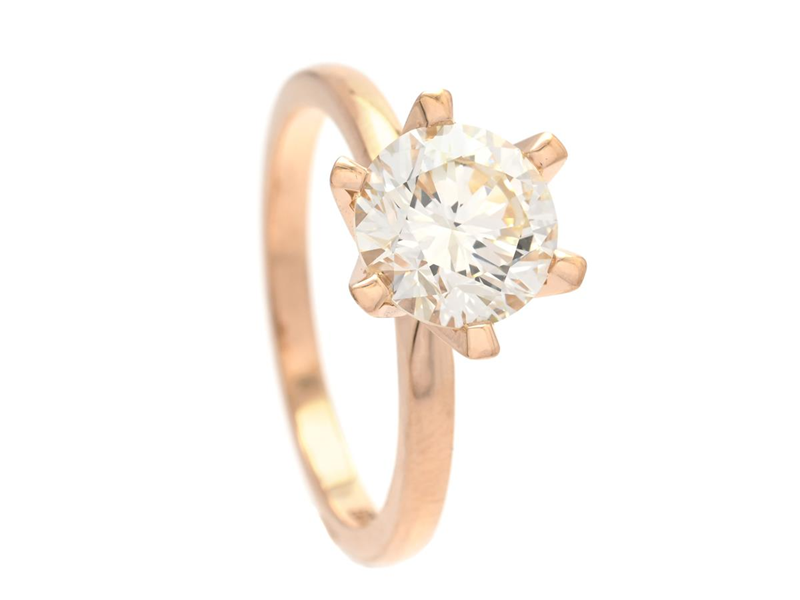 ENSTENSRING, 18K guld, briljantslipad diamant 2,00 ct, Ca(M)/VVS2, GIA inskription 5186216921, Kaplans Safir, Stockholm 2023, stl 17,5 mm, vikt 4,4 g.